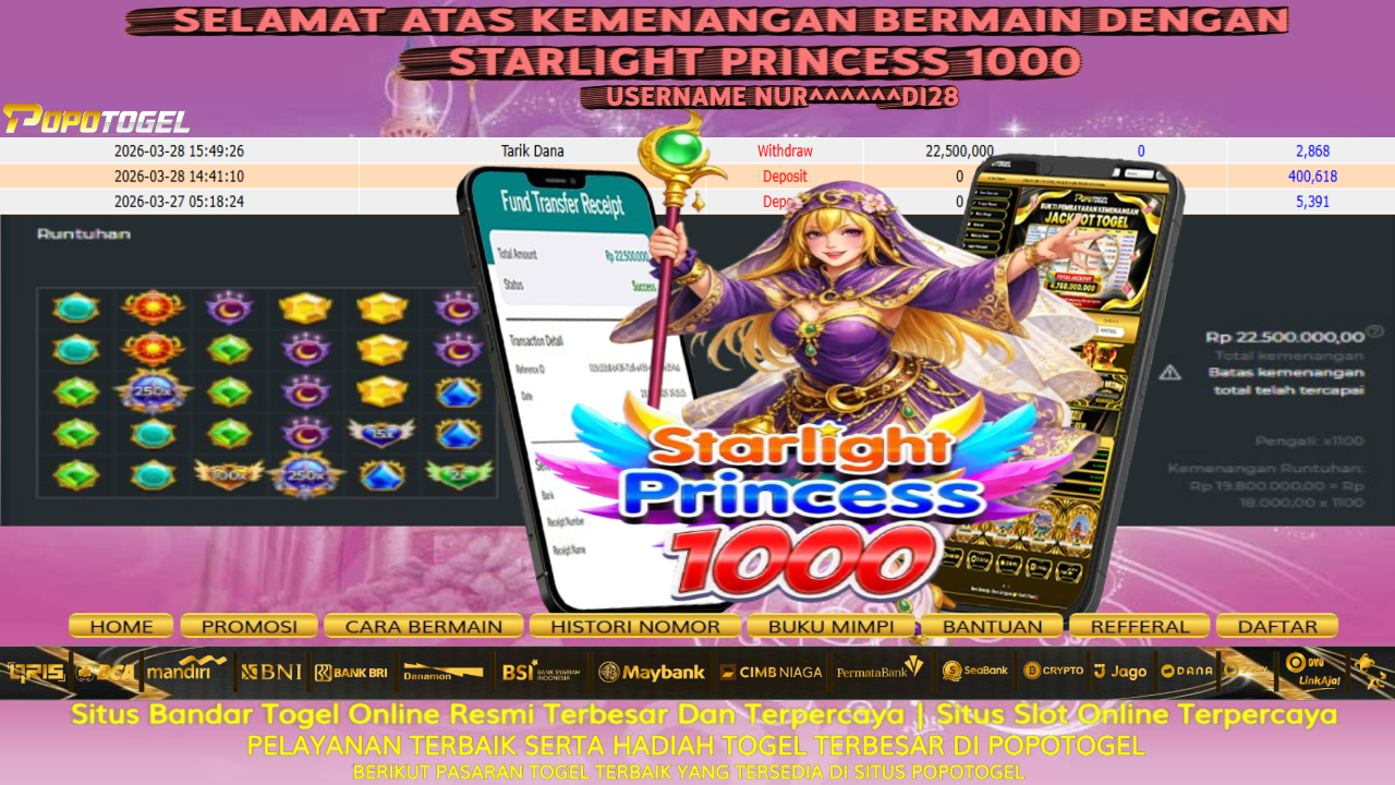 Masih ragu dengan popotogel? Di mana bandar togel online sekarang yang terpercaya seperti popotogel? Bandar yang mengirimkan kemenangan member tanpa bertele – tele. Jadi…. tidak perlu khawatir pada situs popotogel karena kemenangan anda berapapun akan dibayarakan hingga lunas kepada pemenang.